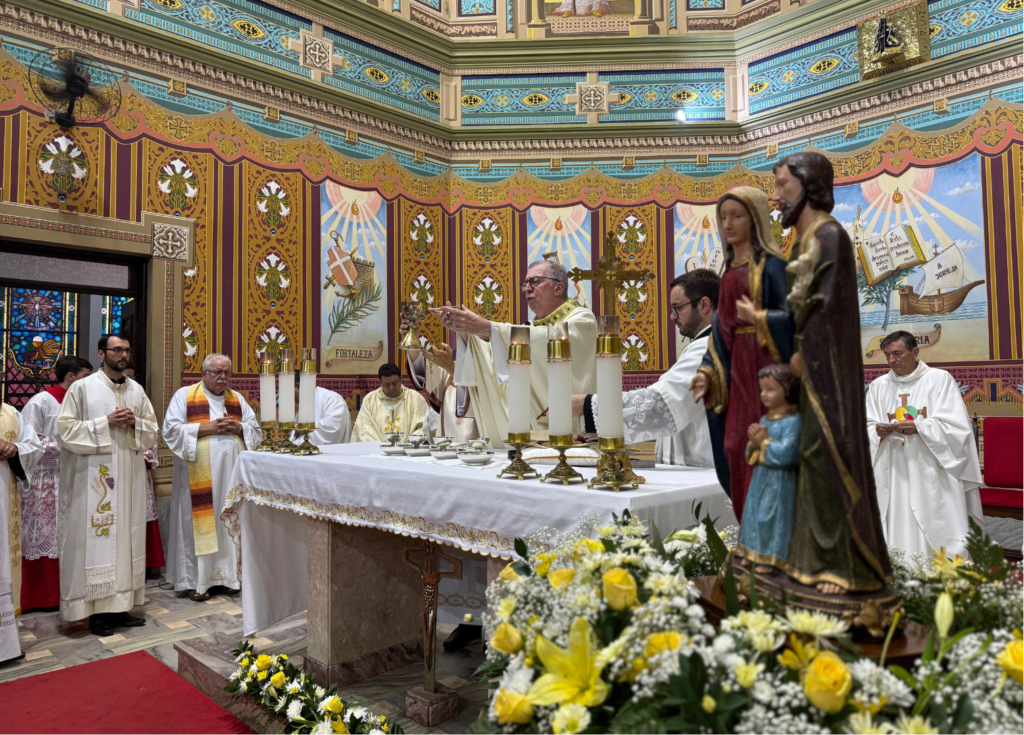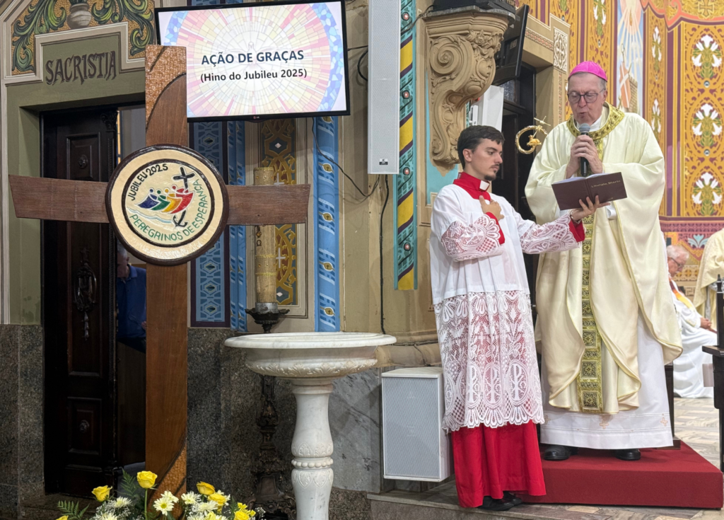 A Eucaristia foi presidida por Dom Milton e concelebrada por diversos padres, representando todo o clero diocesano. O clima orante e festivo que envolveu a assembleia refletia a gratidão por um ano marcado por intensas experiências espirituais, gestos concretos de esperança e renovação do compromisso cristão diante dos desafios da realidade atual.