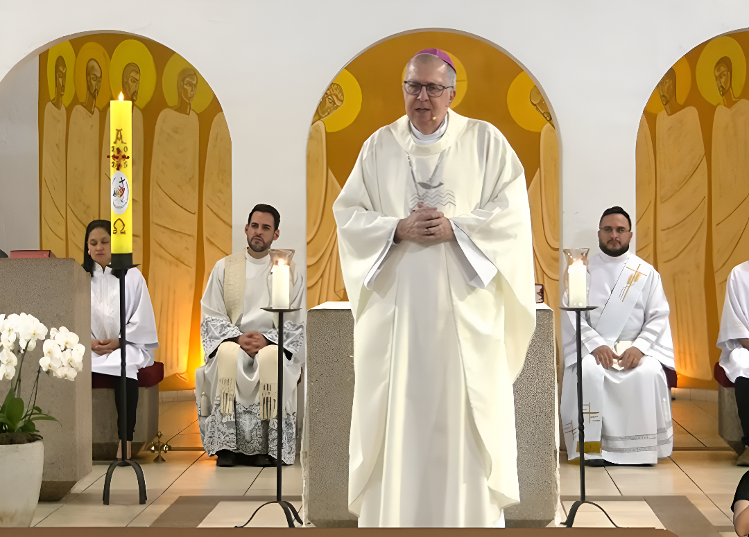 Ao final da Eucaristia, o Bispo disse da sua alegria de poder, em nome da Diocese, celebrar com toda a Igreja, através da Rede Vida, pelo bom êxito da missão de Leão XIV.