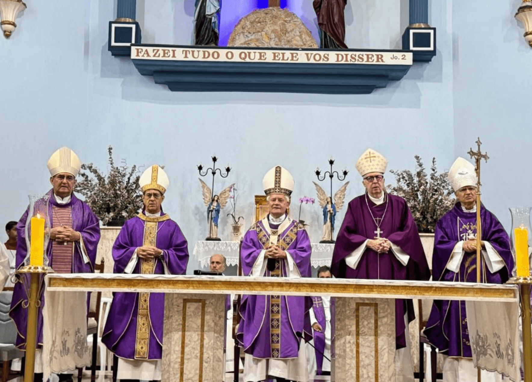 Durante a homilia da Santa Missa, Dom Antônio Emídio Vilar destacou a alegria de estar reunido neste primeiro encontro do ano no Santuário da Mãe Aparecida, confiando à intercessão de Maria os trabalhos pastorais da Província. Inspirado pela Palavra proclamada, Dom Vilar ressaltou que ela conduz a Igreja a atitudes concretas de oração, jejum, penitência e caridade. Ao refletir sobre a leitura do profeta Daniel, sublinhou a humildade daquele que, diante do pecado do povo e da própria fragilidade humana, curva-se em reconhecimento, mas ergue a cabeça na confiança da misericórdia de Deus.